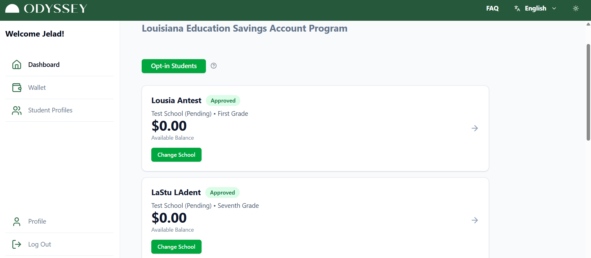 After your student is marked as Approved-Awaiting Opt-In, please log in to your Odyssey Parent Portal. Here, you’ll be able to see the application status for all students.