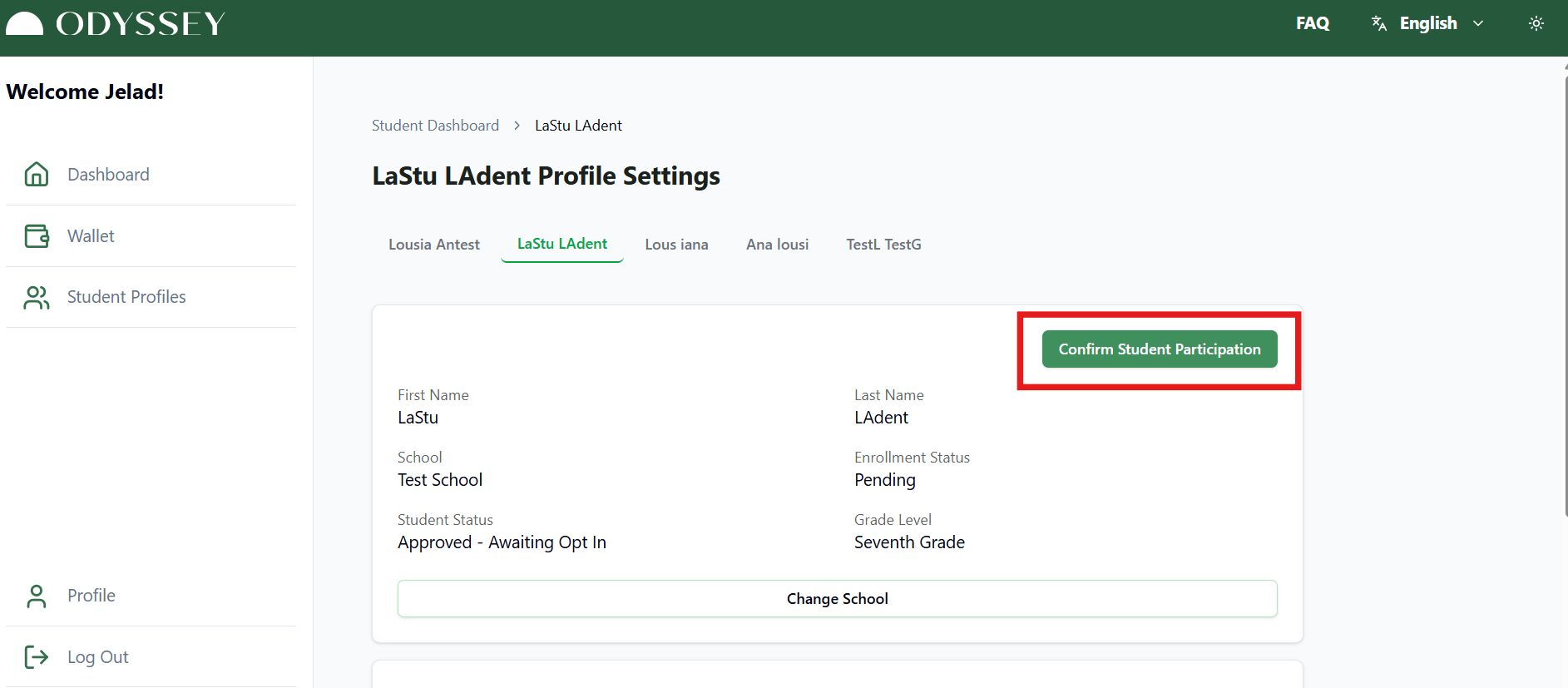 Alternatively, you can go to the student's profile and click [Confirm Student Participation].