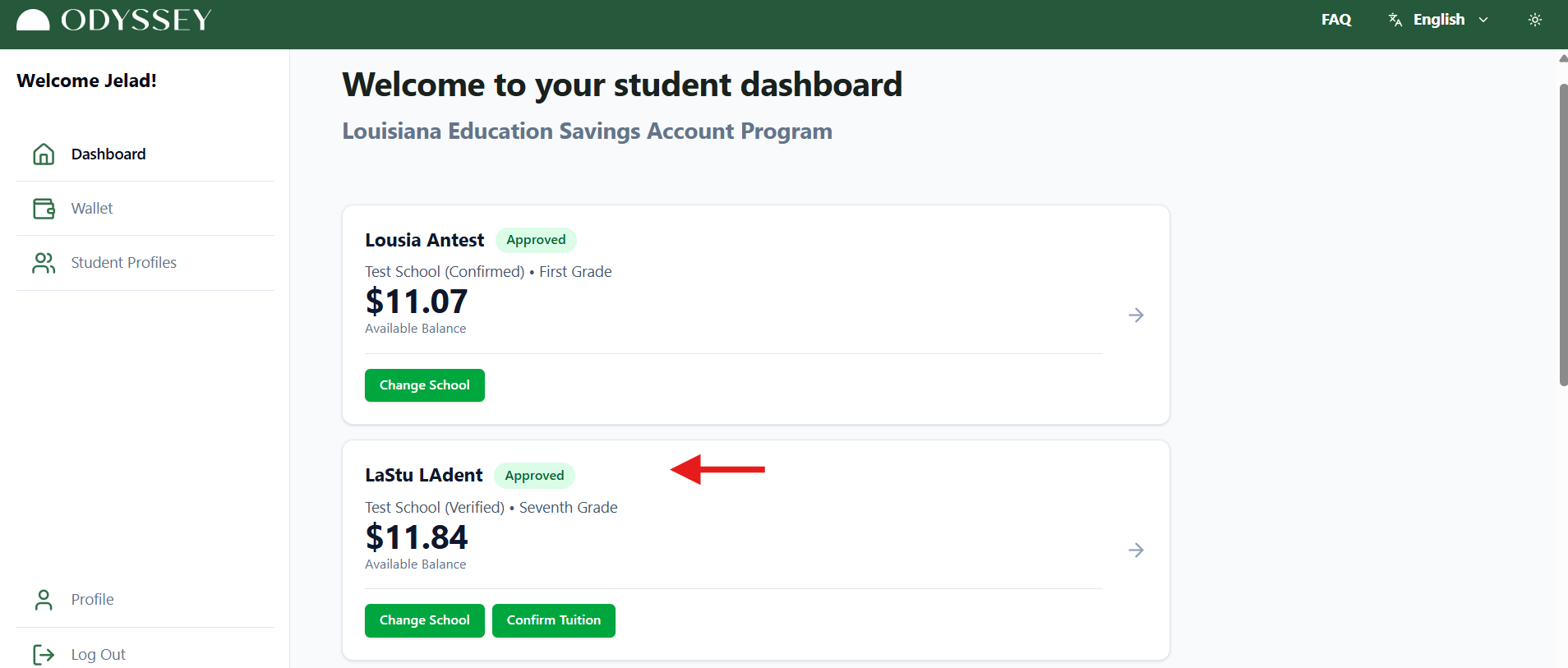 After the BESE-Approved Nonpublic School confirms your enrollment request, they will be able to set tuition & fees for the school year. The amount will then be visible in your Odyssey Account so you can confirm it. You can complete this process in the dashboard or in the Student's Profile.
