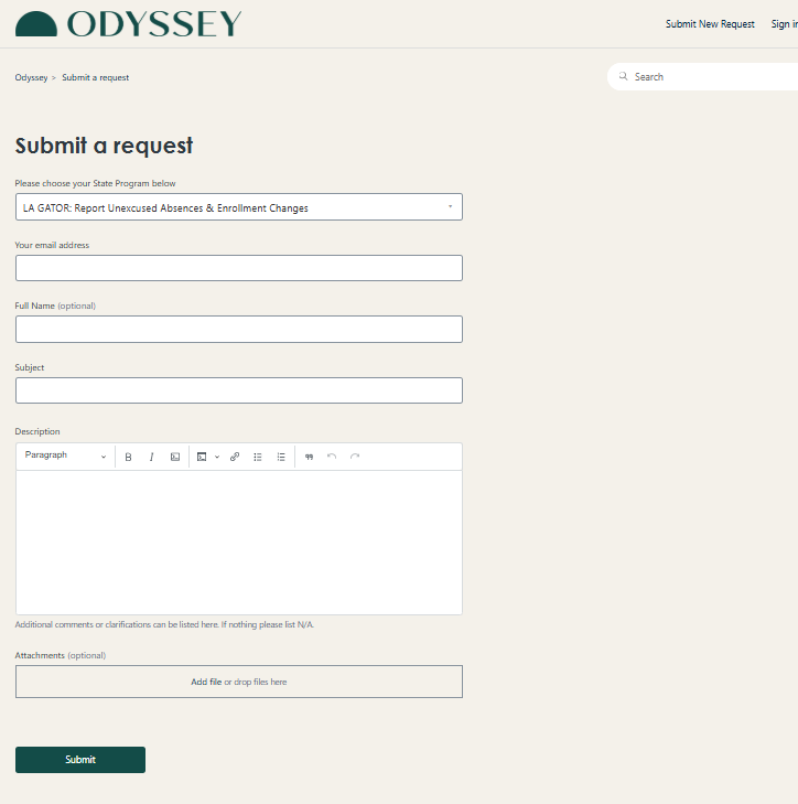 - Begin filling out the [LA GATOR: Report Unexcused Absences & Enrollment Changes] form here.