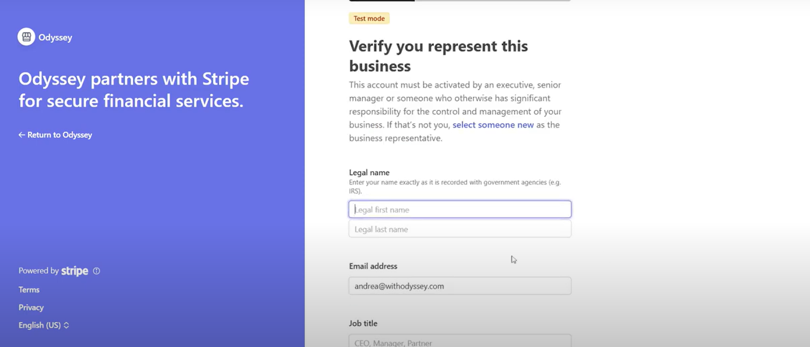 - Fill out the required information for the business or financial administrator of the school as they will be managing the Stripe account:
