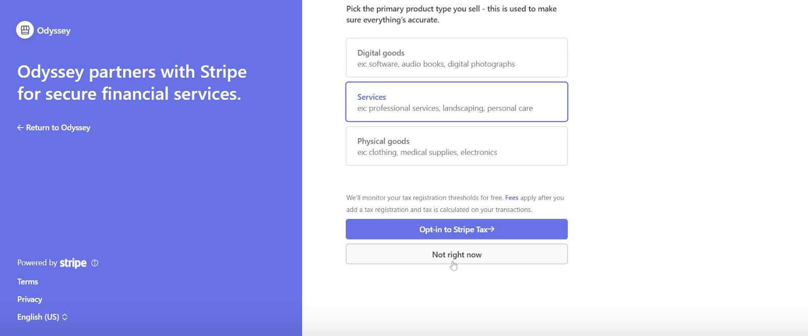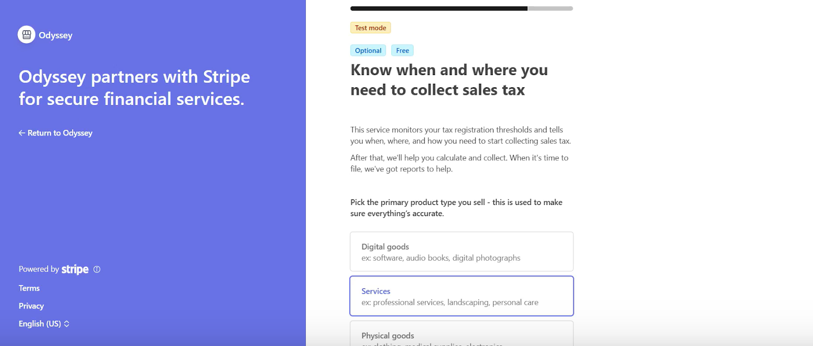 - Decide if you want Stripe to monitor when and where you need to collect tax.