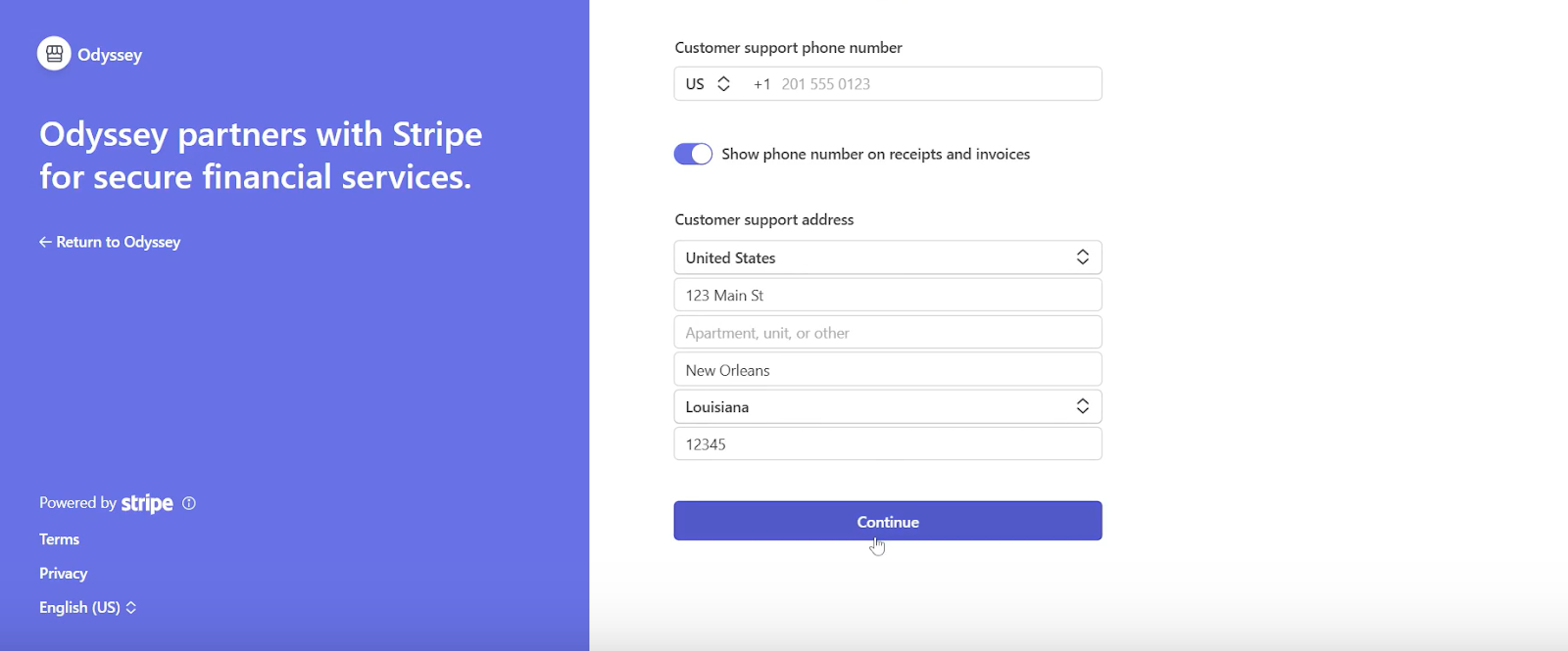 - If you don't want the customer support phone number to be visible in receipts or invoices, click the button next to "Show phone number on receipts and invoices".
