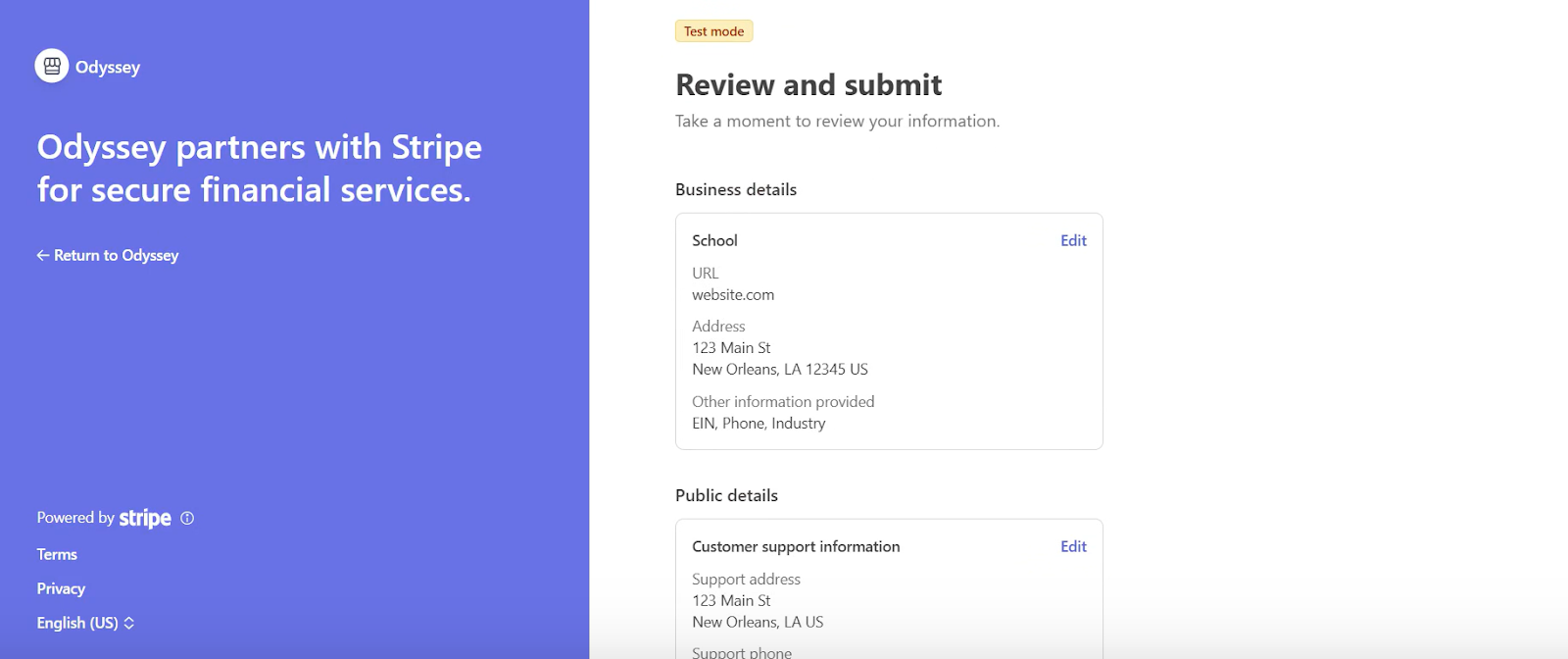 This article is intended to help Louisiana schools understand how to connect their Stripe Accounts to the Odyssey admin.
